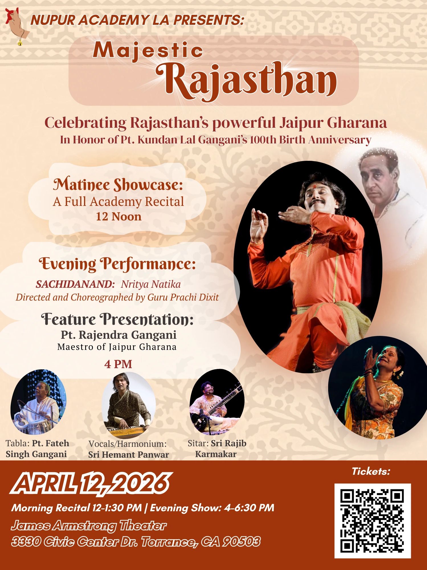 Experience the rhythmic thunder and timeless grace of Kathak-one of the world's oldest dance forms. Directed by Guru Prachi Dixit, this immersive one-day festival features world-renowned Maestro, Pt. Rajendra Gangani from New Delhi alongside a lineup of incredible Indian artists!